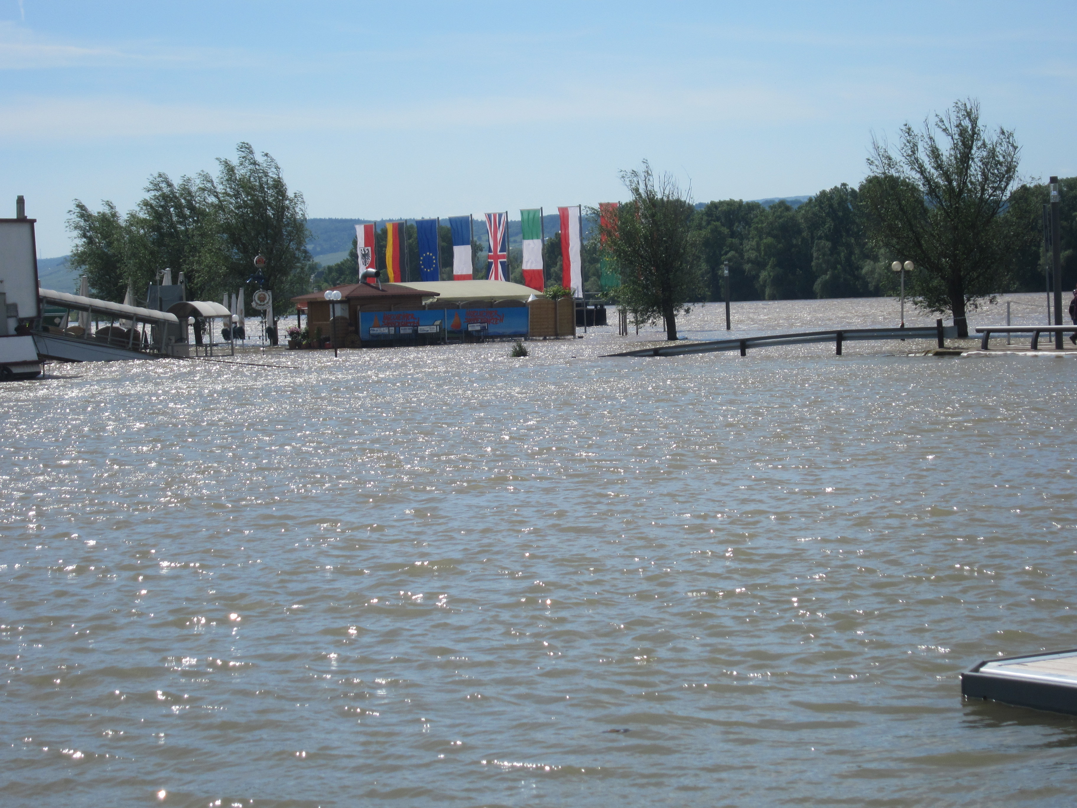 I have restarted my walk today from where I stopped in Bingen. It was a very productive day and I am well on my way to Mainz, despite the “hochwasser” or “high water” across Germany (mainly in Bayern and Sachsen, but also on the Rhein). The water is over the paths by the river and I had to back-track by 1.5km and re-route around the water. The alternative was to swim!