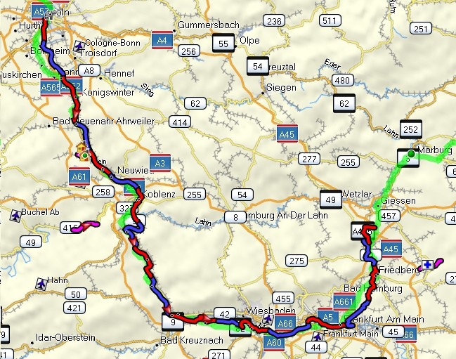 I have made great strides, and the pace will be relentless on the way to Berlin in a month. Have made it past Mainz and Frankfurt am Main and am nearly at Giessen…There is about 550km wear on my treads.